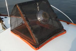 Custom screen hatch covers. Send us your dimensions and your color of binding. The bottom binding is weighted and won't blow away.